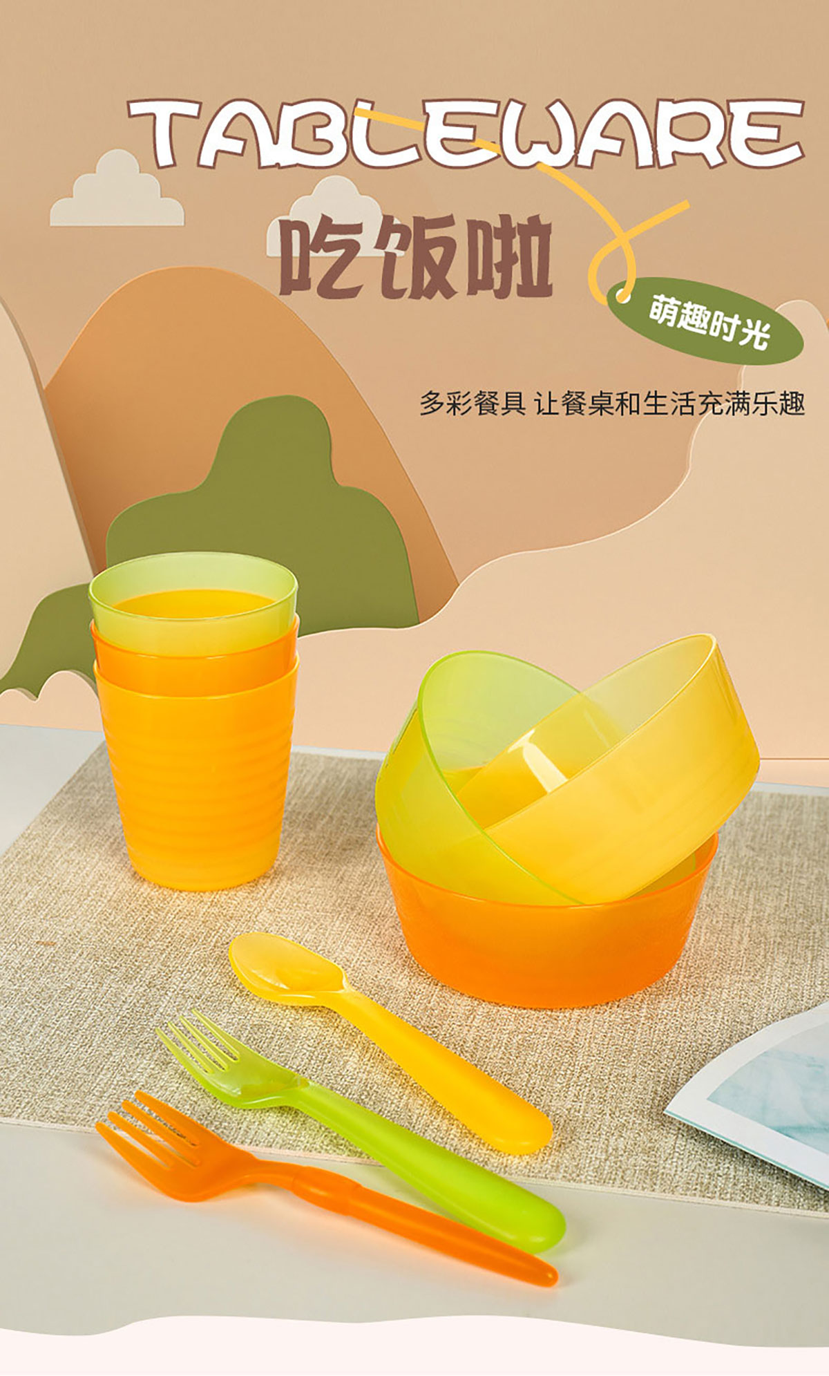 多彩盤子/多彩碗/多彩口杯/6件套/多彩餐具/精彩餐具12件套