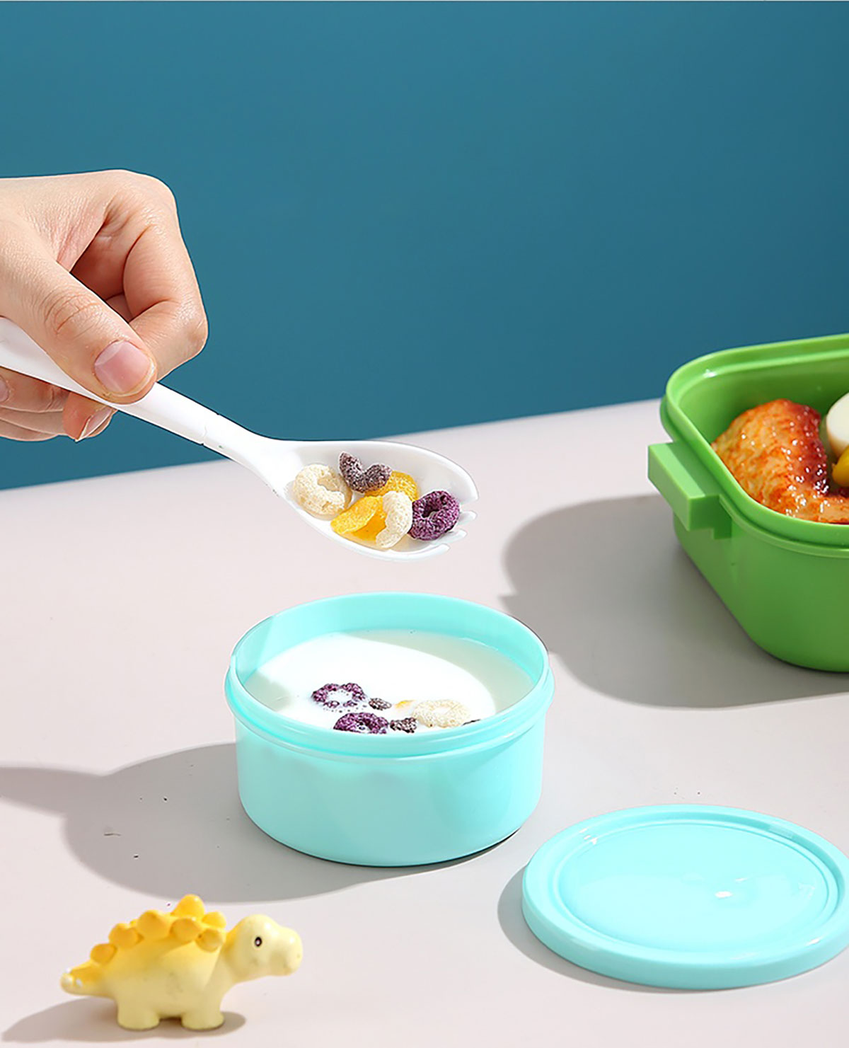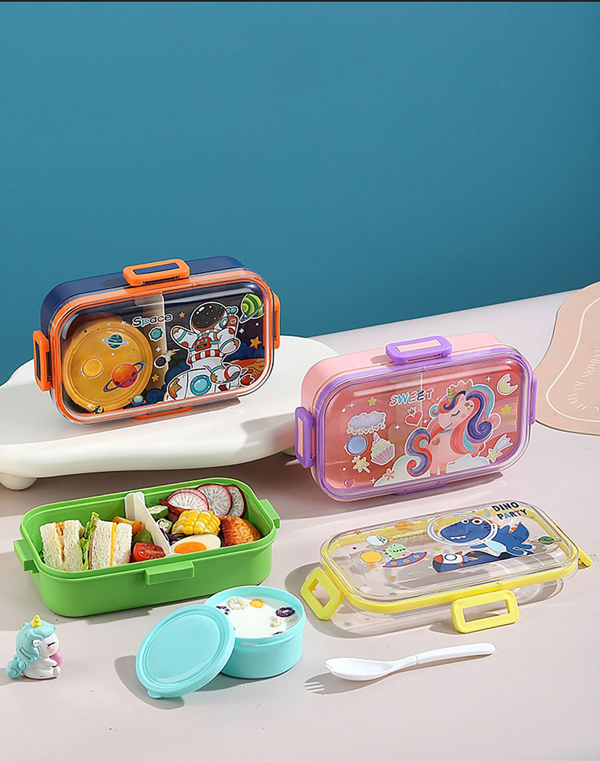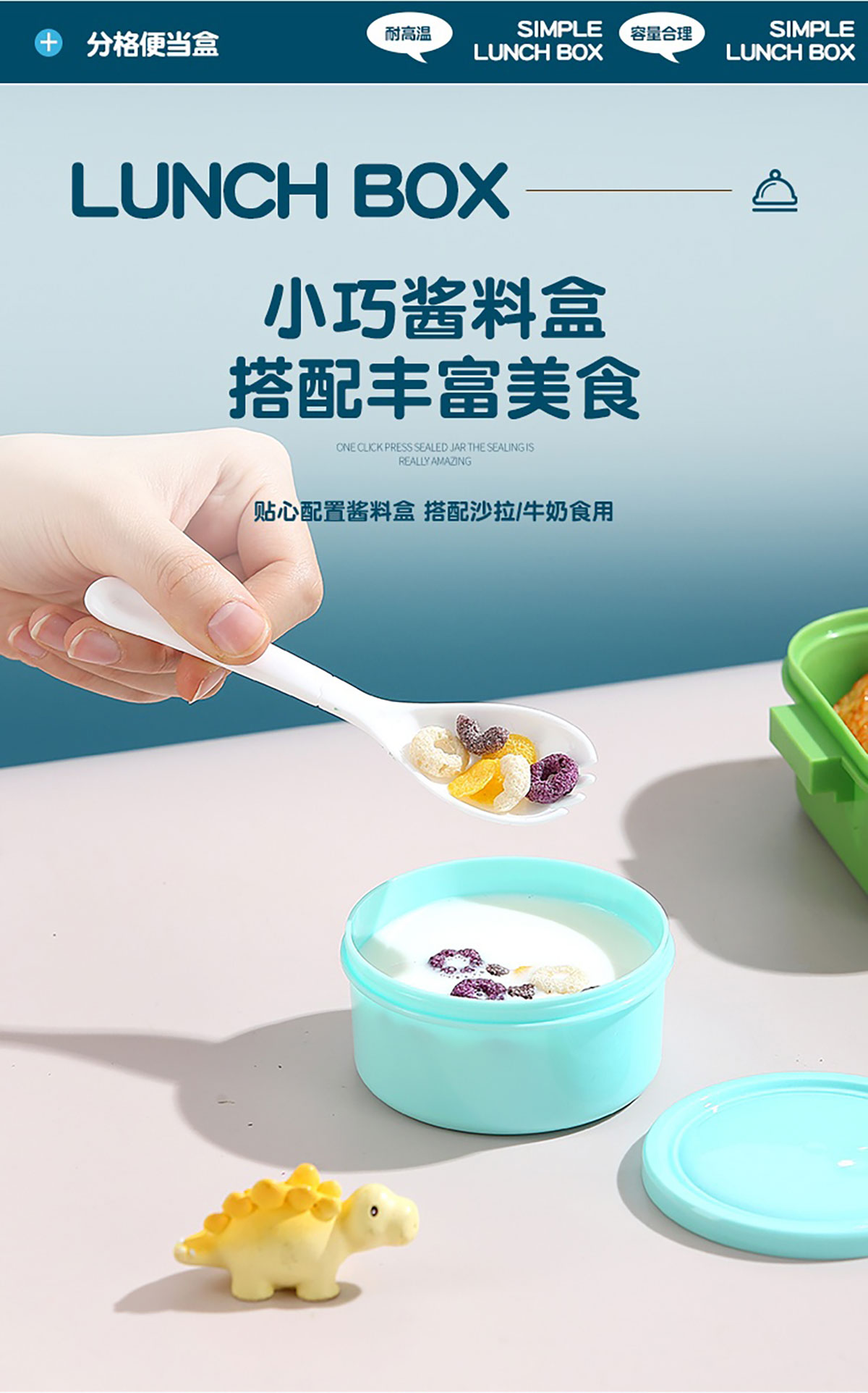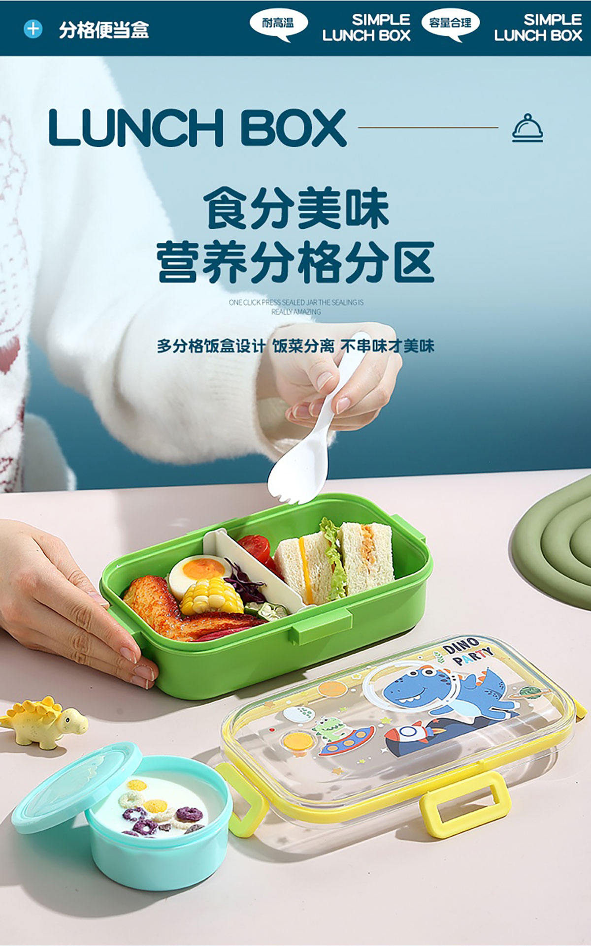 700mI童趣分格密封餐盒(配PP叉勺+沙拉碗150ml)
