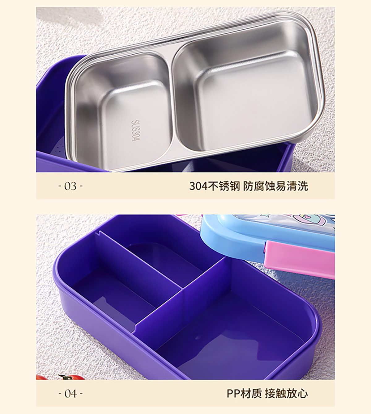 星樂卡通便當(dāng)盒PP款740ml/不銹鋼款500ml