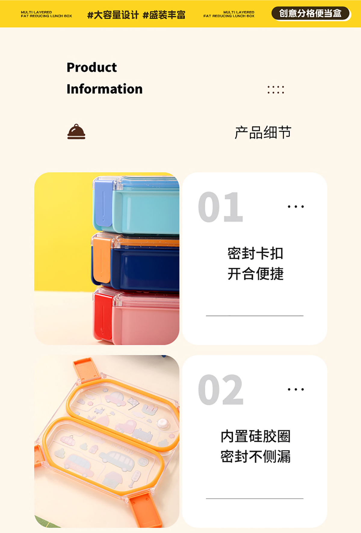 Size: AQX-7181(二格):179*171*62mm/1.05L AQX-7182(三格):179*171*62mm/980ml