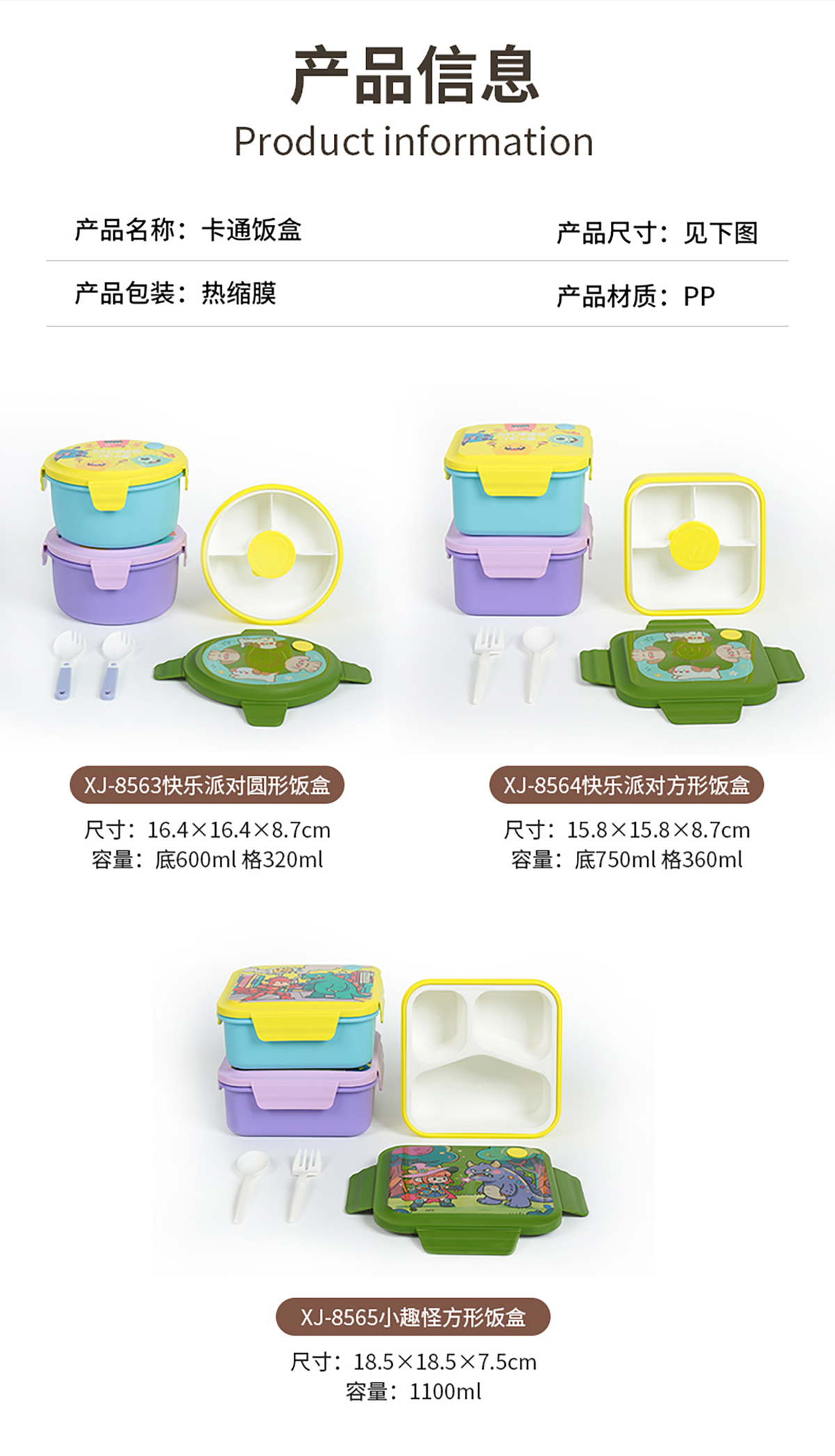HH-XJ8565(小趣怪方形飯盒):185*185*75mm